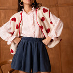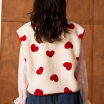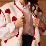 Sa matière effet moutonné invite immédiatement au confort, tandis que les motifs cœurs rouges apportent un contraste joyeux et assumé. Une pièce qui réchauffe les silhouettes tout en affirmant un vrai parti pris stylistique.